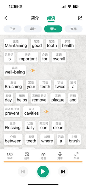 • 支持词性、语法、音标多种阅读模式,深耕每一篇好文章。